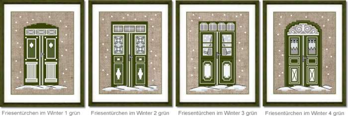 Wir bieten Ihnen hier alle vier Friesentürchen im Winter in grün in der Vorweihnachtszeit im Set an - zum himmlichen Sonderpreis!